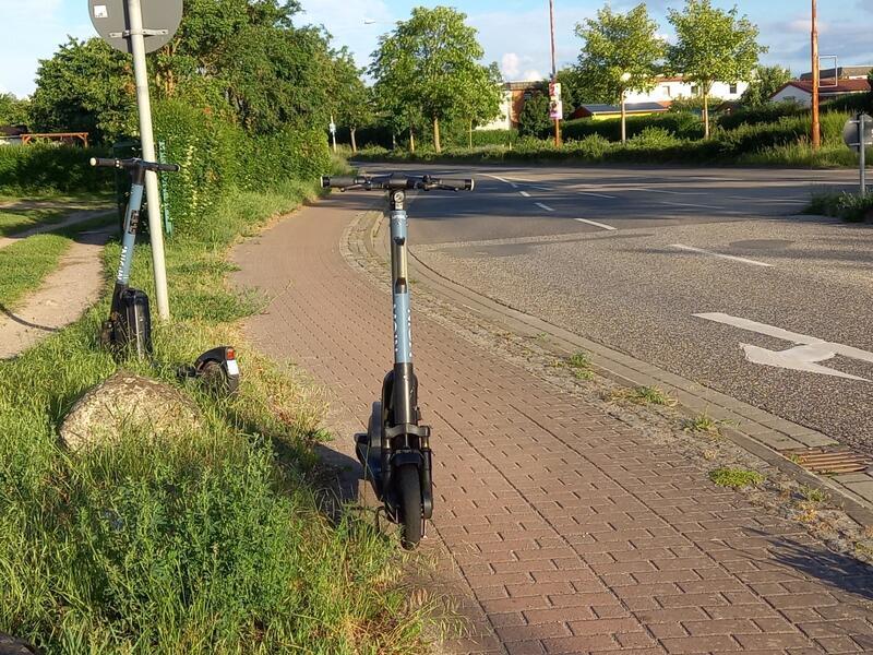 Grundsätzlich müssen Elektrokleinstfahrzeuge (z.B. E-Scooter) so abgestellt werden, dass andere Verkehrsteilnehmer nicht behindert werden.
