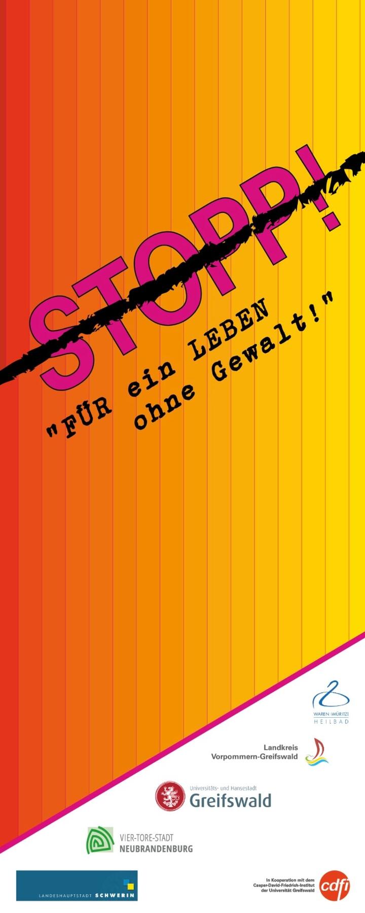 Ziel war es alle Formen der Gewalt sichtbar zu machen. Mit einem klaren STOPP! und „FÜR ein LEBEN ohne Gewalt!“ wird nun gemeinsam ein Zeichen gesetzt. Die Fahnen werden rund um den 25.11.2023 im Landkreis Vorpommern Greifswald, in Waren (Müritz), in der Hanse und Universitätsstadt Greifswald, in der Landeshauptstadt Schwerin sowie in der Vier-Tore-Stadt Neubrandenburg gehisst.