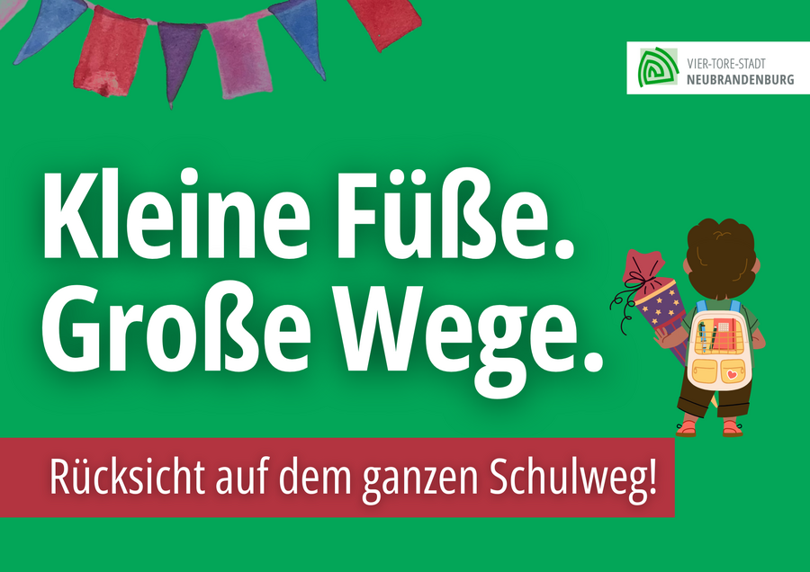 Die Vier-Tore-Stadt Neubrandenburg wünscht allen Schulanfängerinnen und Schulanfängern einen schönen Schulstart und einen sicheren Schulweg.