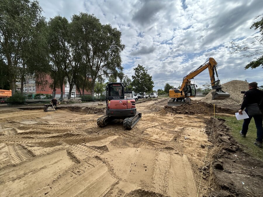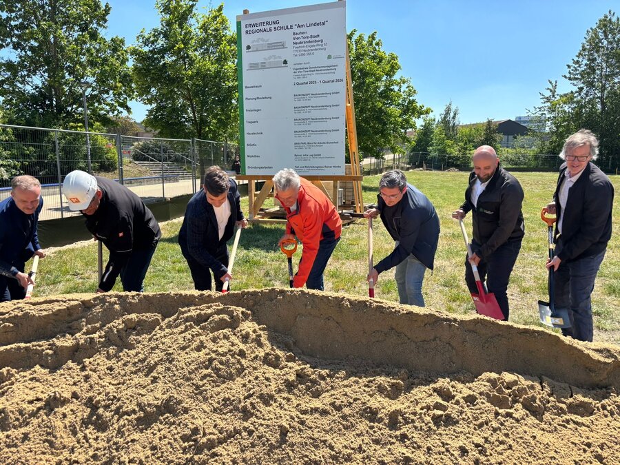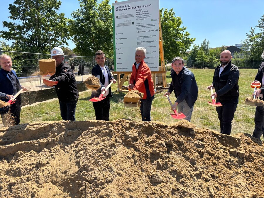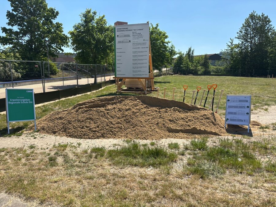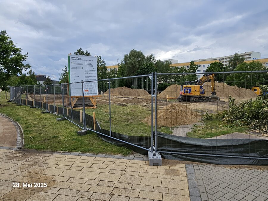 Im Mai dieses Jahres haben wir an der Regionalen Schule "Am Lindetal", den ersten Spatenstich für den Erweiterungsbau gefeiert. Gemeinsam dem damaligen Oberbürgermeister Silvio Witt, griffen Schulleiter Peter Hofmann sowie Vertreterinnen und Vertreter aus der Stadtpolitik – darunter auch Stadtpräsident Thomas Gesswein – zum Spaten.