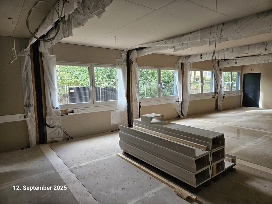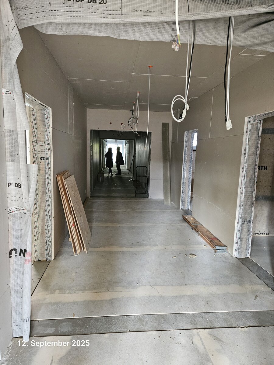 Mit diesen Arbeiten wächst der Erweiterungsbau Schritt für Schritt über den klassischen Innenausbau hinaus. Aus fertiggestellten Räumen wird nun ein funktionierendes Schulgebäude. Ziel ist es, den Innenausbau zeitnah vollständig zu komplettieren und damit eine wichtige Grundlage für die nachfolgenden Ausstattungs- und Einrichtungsarbeiten zu schaffen.